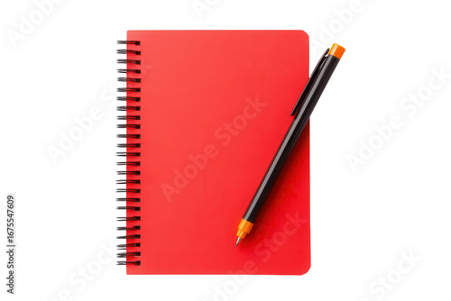 Blank red notebook with pen ready for back to school season in a bright, organized workspace for students and learners #1675547609