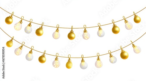 Festive holiday garland with Christmas lights on a gentle blurred white background