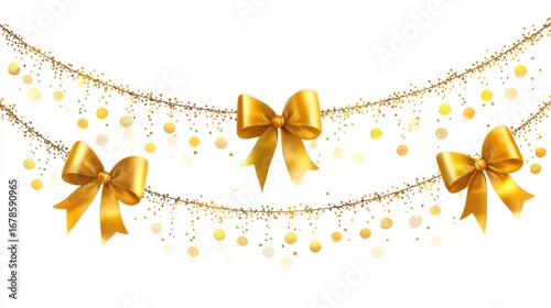 Open gold ribbon gift box with glitter bow on a soft glowing bokeh background