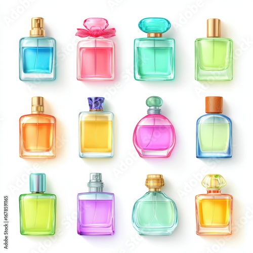 Collection of beauty and skincare product illustrations featuring colorful elements
