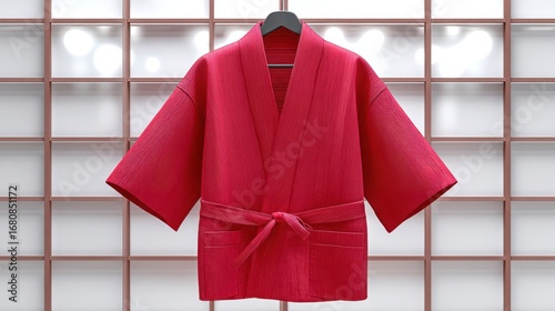 Elegant ruby red kimono jacket for design mock-ups in modern setting