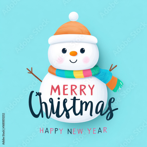 Smiling snowman illustration with Merry Christmas and Happy New Year text