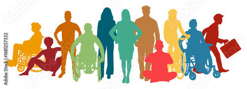 Bunte Silhouetten vieler Erwachsener in verschiedenen Posen