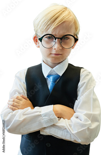 Junge als kritischer Manager mit verschränkten Armen