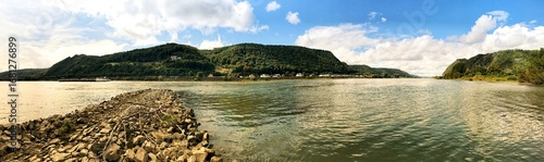 Mountainous panoramas with rocky terrain and green valleys under blue cloudy skies
