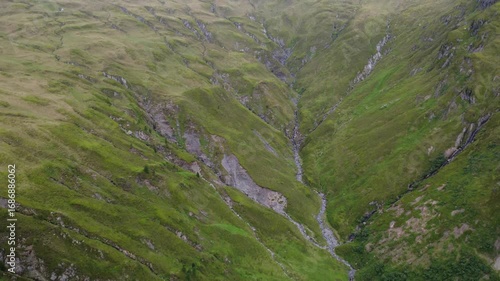 Aerial Perspective of Lush Green Slopes in the Majestic Austrian Alps During Summer.