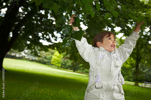 Frau im Wald umarmt einen Baum mit geschlossenen Augen f