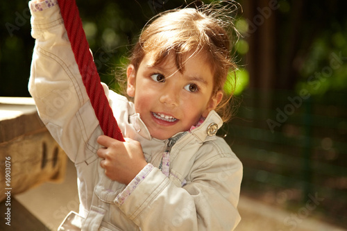 Back view of a Luxembourgish child enjoying a sunny day outdoors