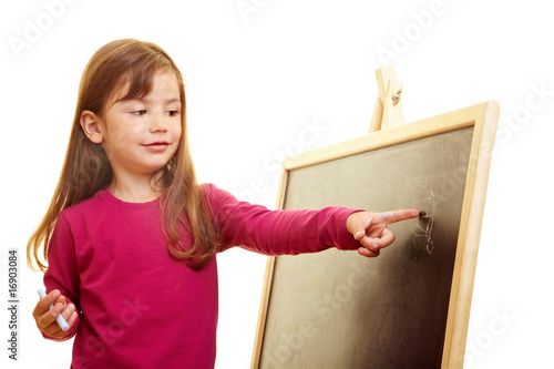 Girl pointing to chalkboard