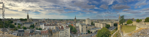 Panoramic view of a historic city with skyline and dramatic cloudy sky