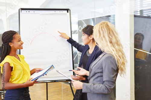 Geschäftsfrauen bei Präsentation am Whiteboard