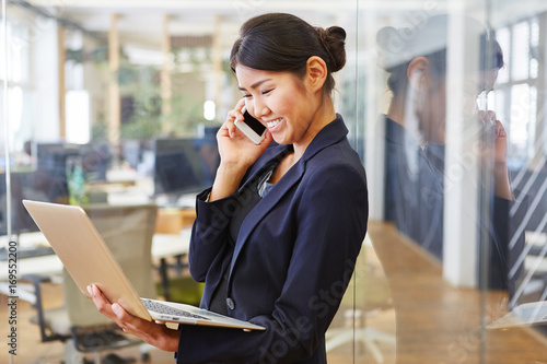 Junge Geschäftsfrau telefoniert mit dem Handy