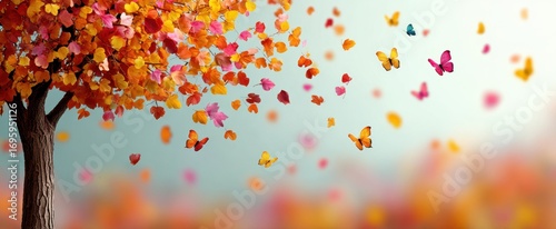 Colorful autumn leaves and butterflies in a dreamy seasonal composition