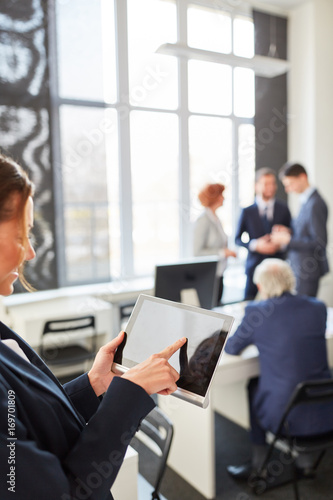 Panorama aus Silhouetten von Geschäftsleuten vor bunten Business Portraits
