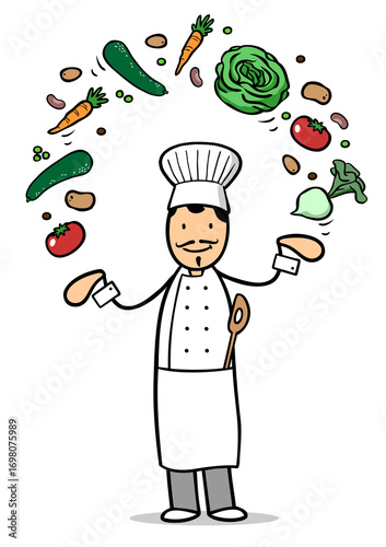 Schneller Cartoon Koch mit veganer Gemüsepfanne