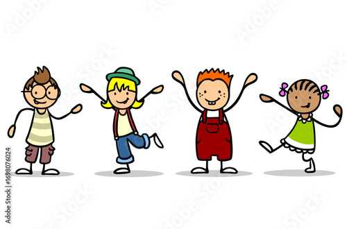 Glückliche Gruppe Cartoon Kinder nebeneinander
