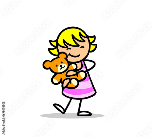Cartoon Mädchen kuschelt mit Teddybär als Kuscheltier