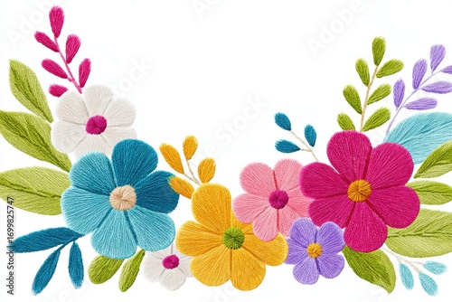 Vibrant floral embroidery closeup with colorful handcrafted thread art details
