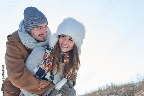 Familie hat Spaß beim Schlitten fahren und rodeln