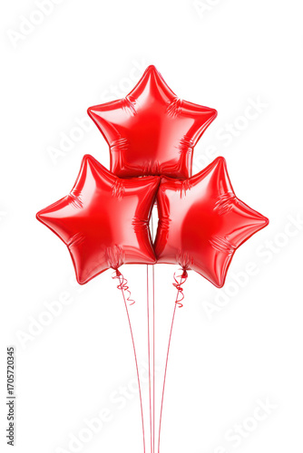 PNG three vibrant red star balloons on a clean white background