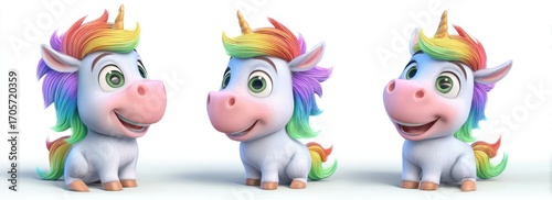 Adorable colorful unicorn character illustrations with joyful cartoonish expressions