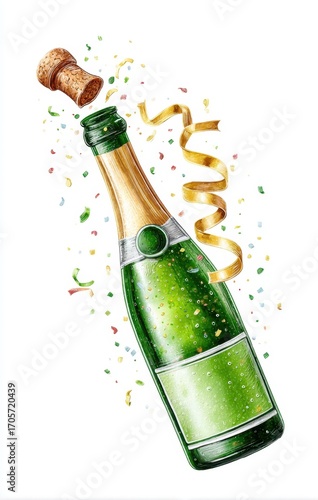 Champagne explosion with colorful fireworks celebrating a festive occasion