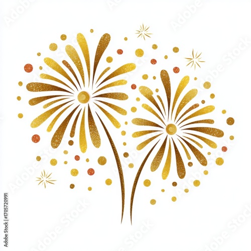 Golden fireworks design with sparkles on a clean white background