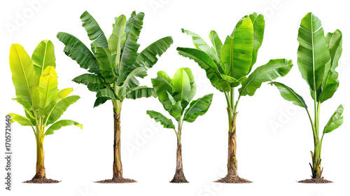 PNG collection of Four Green Trees in Different Shapes and Sizes Isolated on White