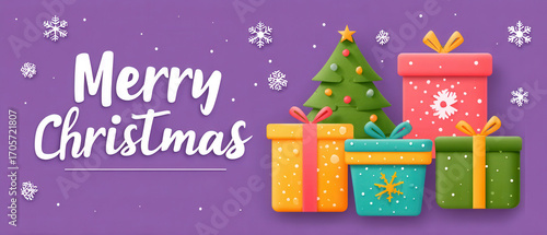 Festive Christmas Design with Styled Gifts and Merry Christmas Text on Purple