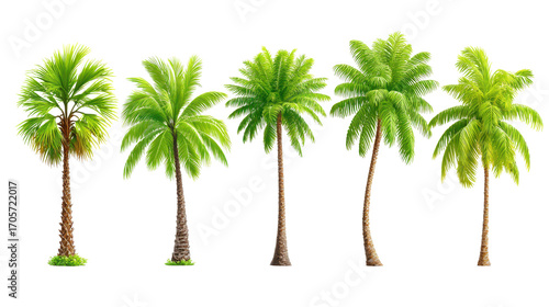 Lush tropical palm trees with vibrant green foliage in 3D rendering