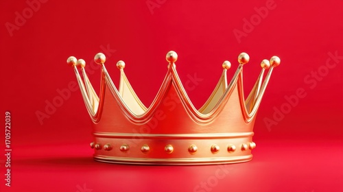 Golden crown on vibrant red background symbolizing royalty and luxury