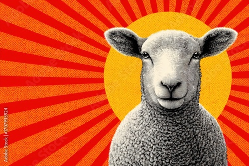 Stylized sheep illustration with vibrant red gradients and graphic geometric design