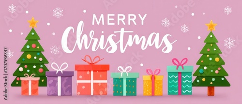 Festive Christmas Design with Styled Gifts and Merry Christmas Text on Purple
