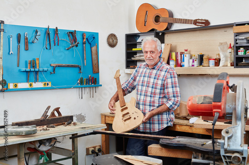 Alter Gitarrenbauer in seiner Werkstatt