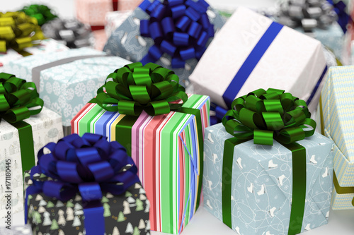 Geschenke mit Weihnachtsbaum vor Hintergrund
