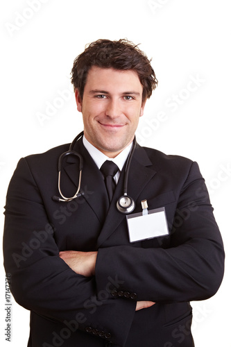Lächelnder Geschäftsmann mit verschränkten Armen
