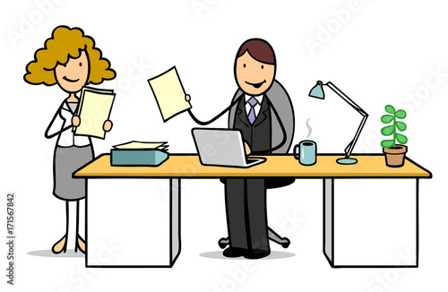 Cartoon Frau bei Vorstellungsgespräch im Büro