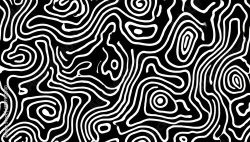 Black and white abstract pattern with wavy lines and swirls as seamless background