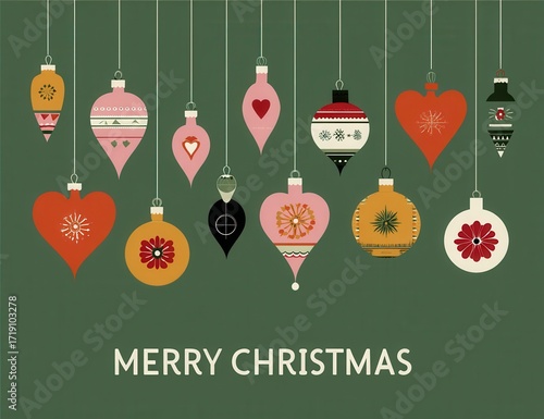 Retro styled Christmas ornaments featuring festive and decorative hanging baubles