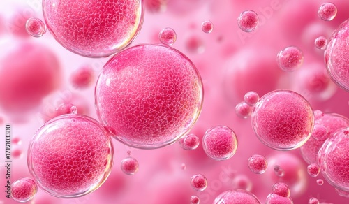 Captivating macro shot showcasing intricate patterns of delicate bubbles in a harmonious blend of soft pink hues