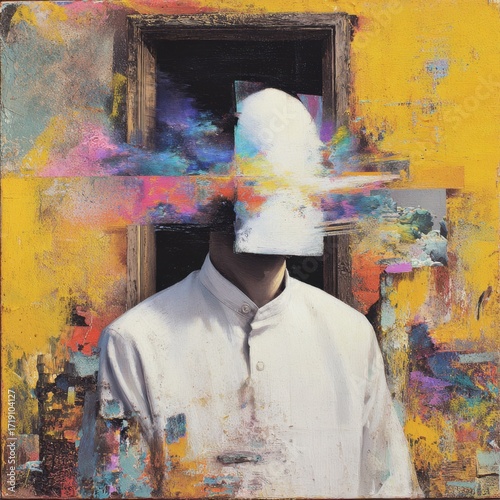 Abstract portrait with vibrant colors and enigmatic facial expression