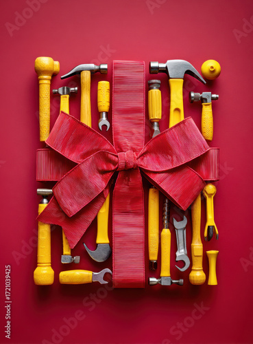 Gift wrapped with a red ribbon of tools, a DIY present ready for a handyman