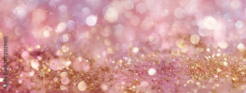 Abstract pastel bokeh background with golden glitter accents and soft hues