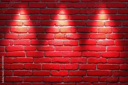 Spotlight on a red brick wall background with dramatic lighting for urban visuals