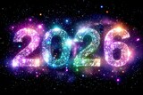 Bright colorful futuristic design showcasing the year 2026 in neon letters