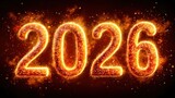 Glowing fiery digits display the year 2026 with radiant lava-like effect