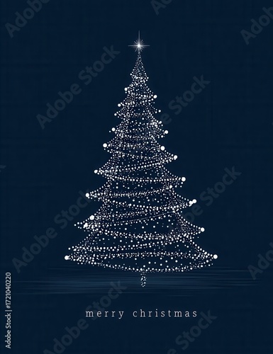 Elegant Christmas tree illustration with snowflakes and classic holiday greetings