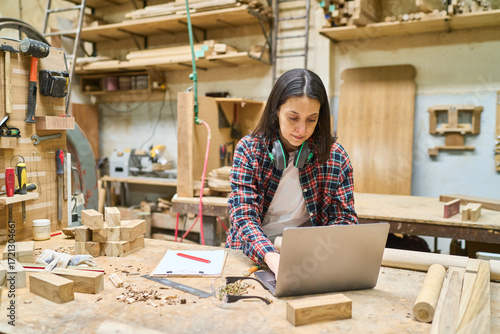 Experienced craftsman teaching young apprentice in a woodworking shop