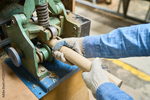 Experienced craftsman teaching young apprentice in a woodworking shop