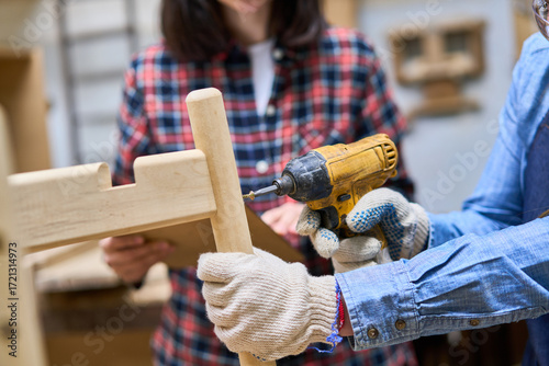 Joiner gluing and repairing the chair
